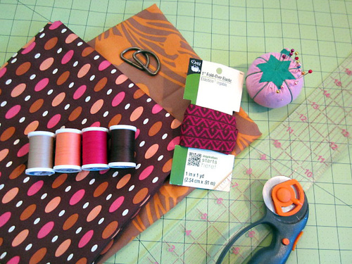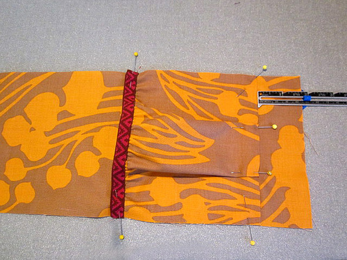 - Find the remaining length of Fold-Over Elastic. You will use this to bind the top, similarly as you did for the pockets but without the stretch.