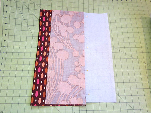 - Fold the interfaced panel in half, right sides together, along the original crease line. Pin along both sides and across the bottom, leaving an approximate 3″ opening along the bottom for turning.