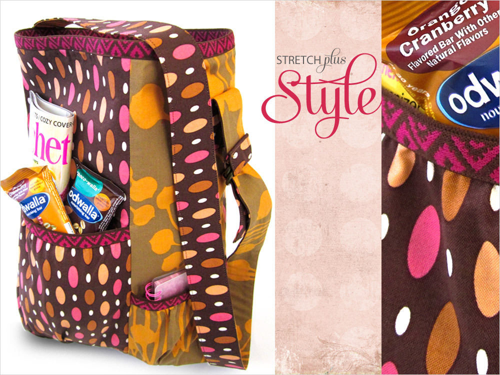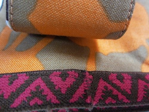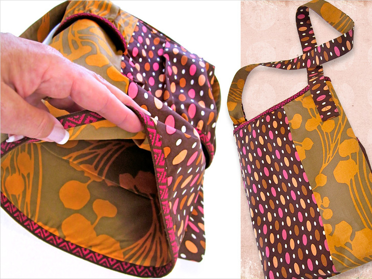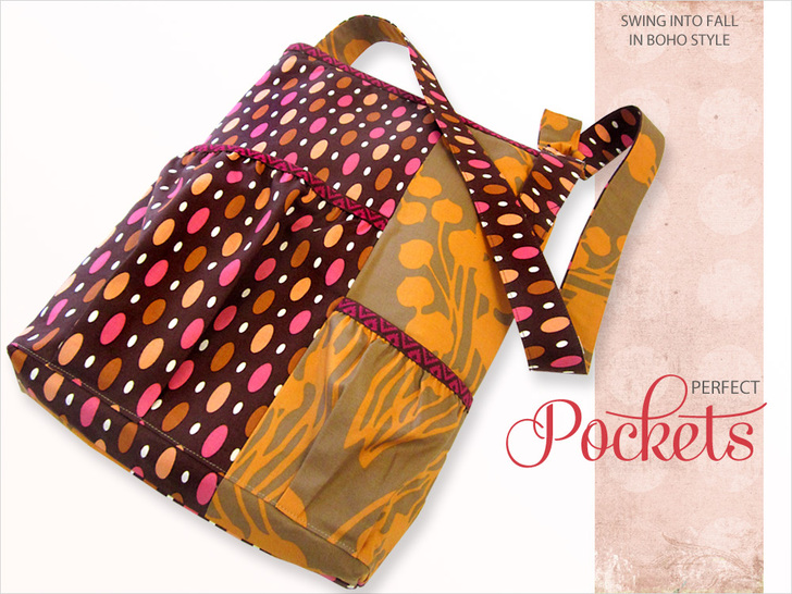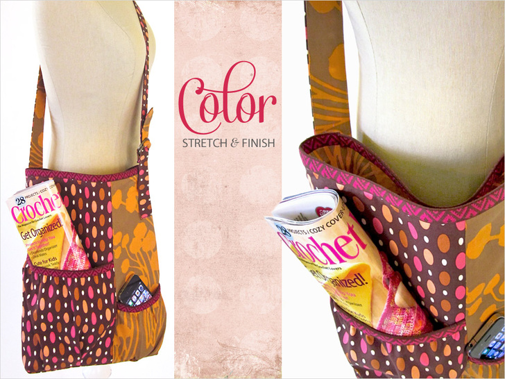 This fun and casual bag features two generous pleated pockets bound with Fold Over Elastic (FOE). One of the things we love about FOE is the ability to use it as a binding. You get three benefits in one: color, stretch and finish. There’s a built-in crease line down the center that allows for easy and accurate folding.