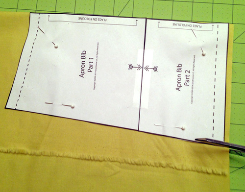 - Download and print out the TWO pattern pieces for the apron bib: Bib Pattern-Part 1 and Bib-Pattern-Part 2.