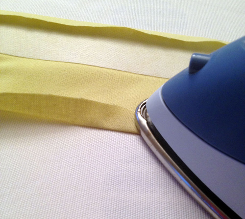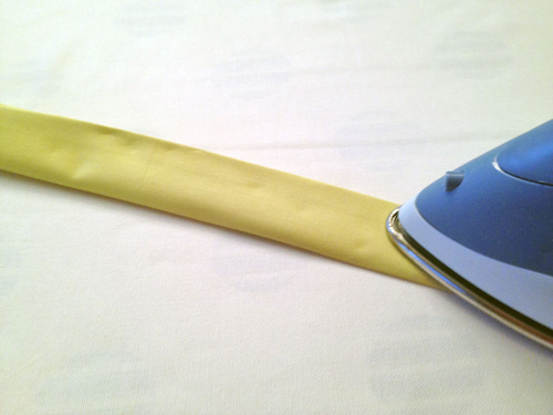 - Fold the fabric strip in half, wrong sides together, and press to set a center crease.