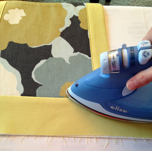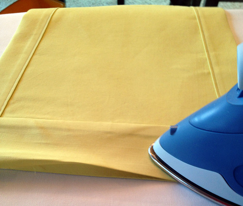 - Press flat, pressing in the raw edges of the open end so they are flush with the sewn seam.
