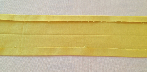 - Find the two 2″ x 39″ waist tie strips. Fold in half, so each is now 1″ x 39″.