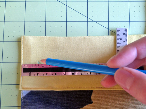 - With a fabric pen or pencil, draw in guide lines for the panel pocket divisions.