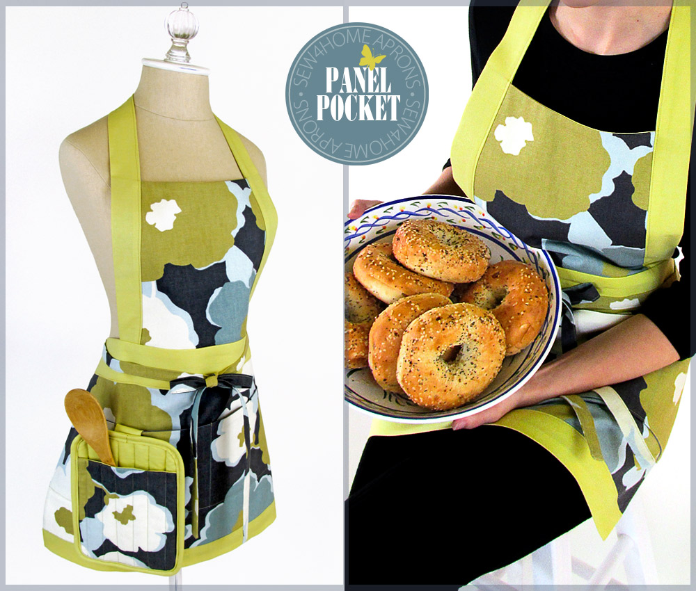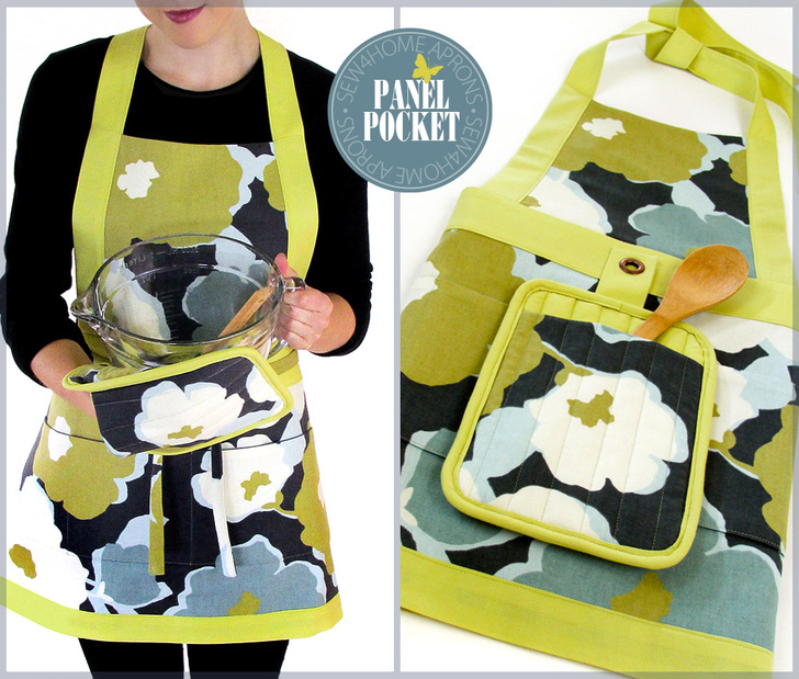 The clean, modern design of this apron depends on a precise fussy cut, not only to center the wonderfully large motif on the fabric, but also to create the perfect match of the panel pocket against the apron skirt. We have a good general tutorial on How To Fussy Cut as well another on How to Match a Pocket to a Panel.