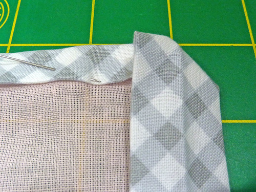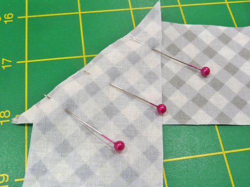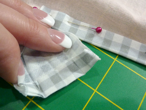 - Pin the corner in place, the continue to the next corner, repeating the diagonal fold at each corner.
