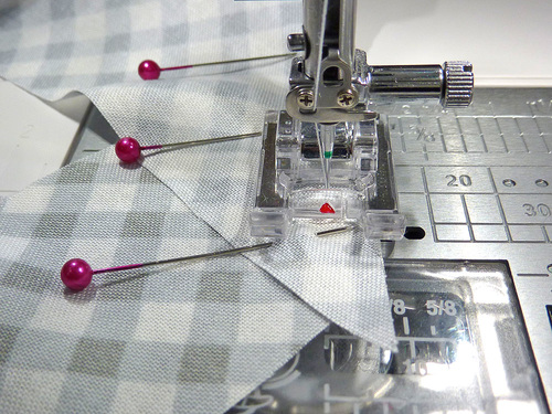 - Stitch along the diagonal edge, using a ½” seam allowance.