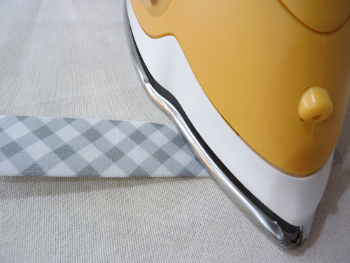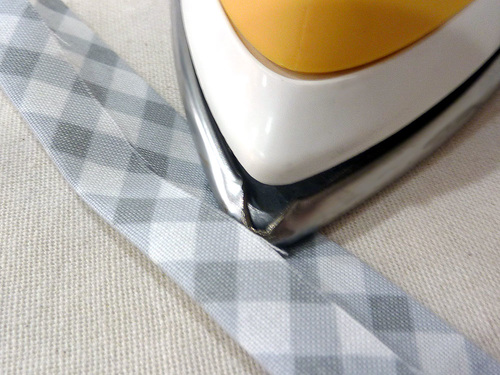 - Re-fold along the original crease line, concealing the raw edges between the folds and creating your final binding strip.