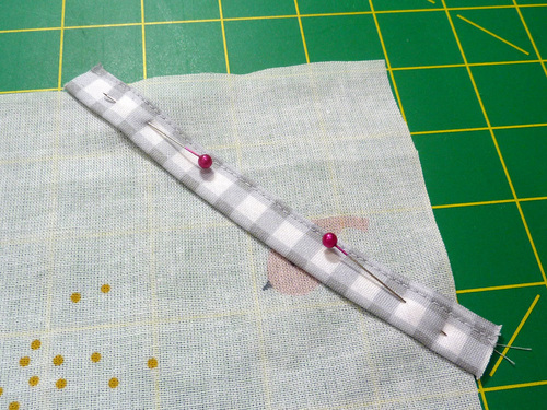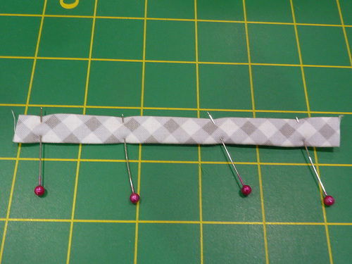 - Repeat with the 5½” strip to create the hanging loop. Pin in place along the folded edges on just this short strip.