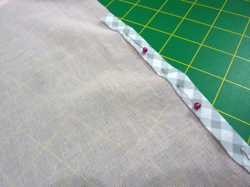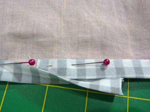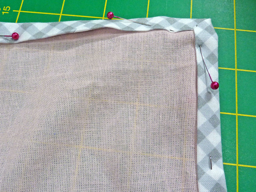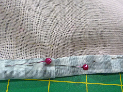 - Pin in place, making sure your overlap is even and no raw edges are showing.