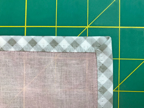 NOTE: As mentioned above, our strips were straight cut because the Greenery gingham is printed on the diagonal. You could cut standard gingham on the bias to get a similar effect.