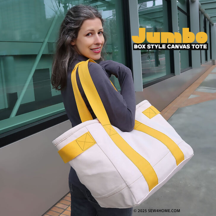 The full Box Style Jumbo Canvas Tote ePattern is just $5.75, which is a fraction of the cost of most independent and commercial patterns. If you’re a S4H regular, you know virtually all our site content is free, but it does help us keep our small business operating when we have a few other revenue options to help off-set the ever-rising costs of creating our popular projects. We appreciate your support of our Etsy Shop.