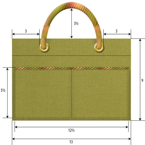 ONE 13½” wide x 6½” high rectangle for the exterior pocket - From the exterior fabric (home dec green in our sample), cut the following: