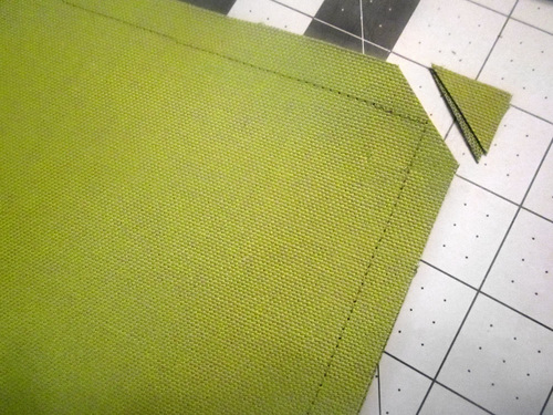- Trim away the excess triangle, leaving an approximate ½”” seam allowance.