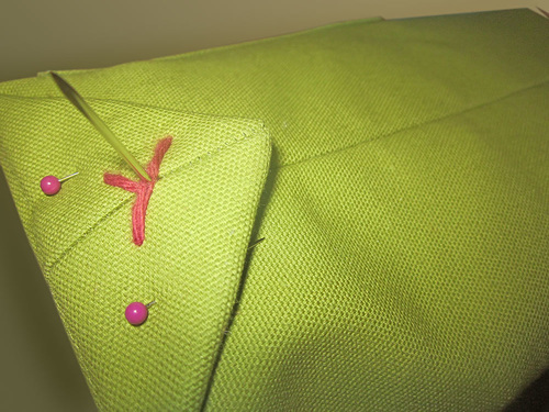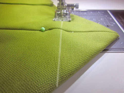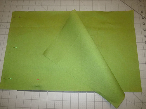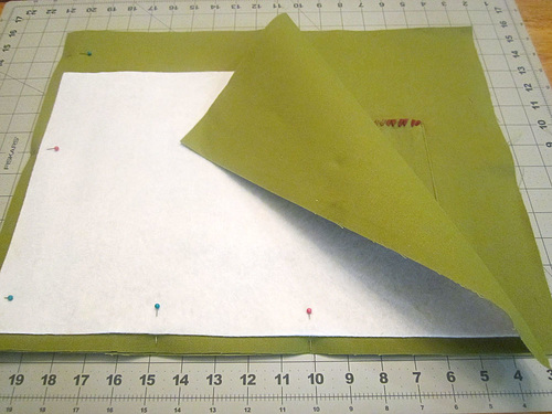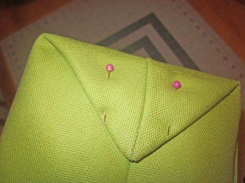 - Fold up each corner along the seam line so the point of the corner is centered on the side seam. Pin in place.