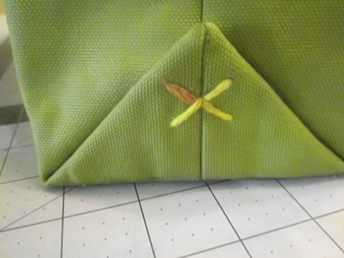 NOTE: As an option to further hold the corner flat, we hand stitched along the edges of the boxed corner, hiding the stitches between the layers.