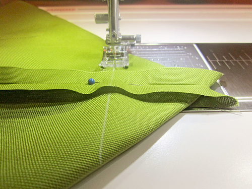 - Using a ½” seam allowance, stitch along both sides and across the bottom, pivoting at the corners.