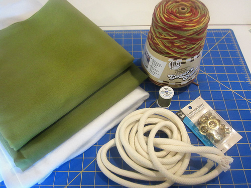 - ¾ yard of 45”+ wide mid-weight cotton sateen or similar in a closely matching color for the bag lining; we originally used a Home Essentials Decor Solid in Green
