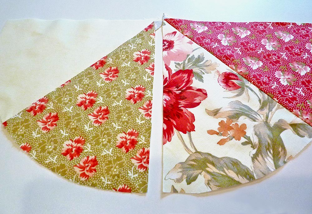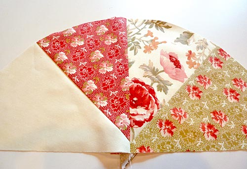- Using a ½” seam allowance, sew the wedge shapes together along one side to complete your half circle.
