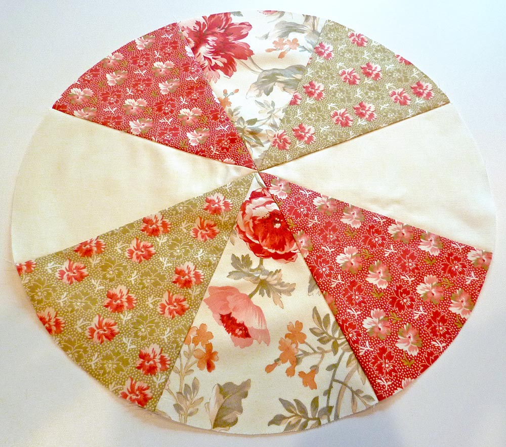 - Using a ½” seam allowance, sew the wedge shapes together along one side.