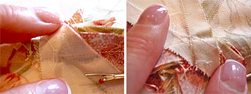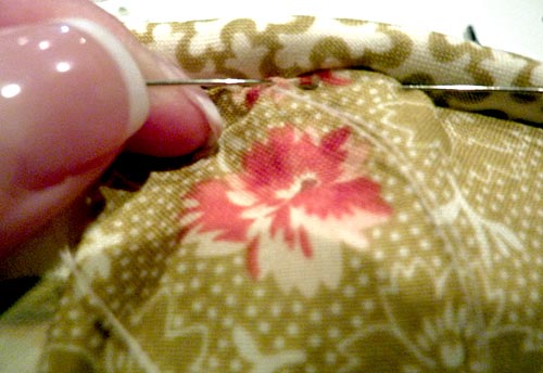 - Slip stitch the opening closed, hiding your stitches close to the piping.