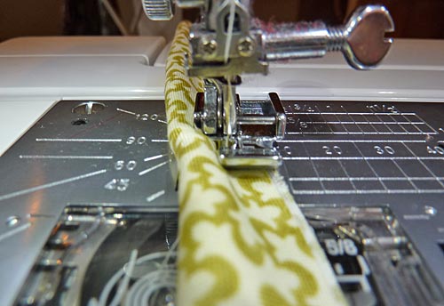- Using a Zipper foot, sew close to the cording to create your fabric covered piping.