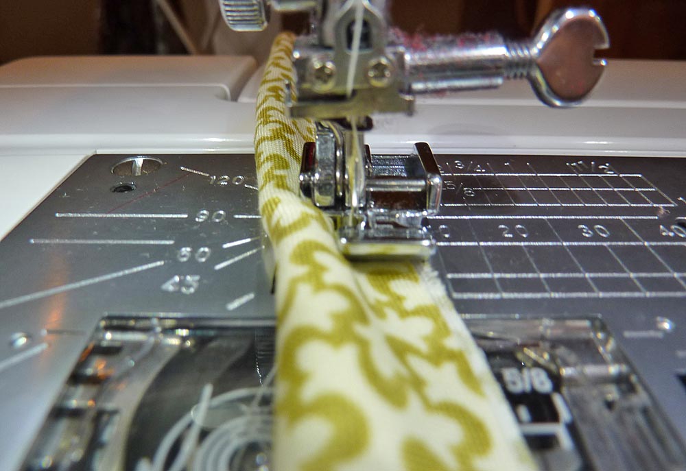 - Stitch together your 2″ bias strips as needed to create a 48″ length.