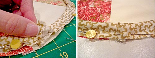 - You’ll notice that all the “ears” from your various seams come together in the middle of the circle, which makes pressing a challenge. So how did we get our circle to lay nice and flat? It’s a technique called pinwheeling.