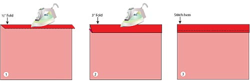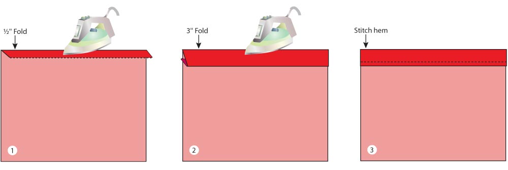 - Edgestitch in place along the inside folded edge to create a 3½” clean finished hem on each piece.