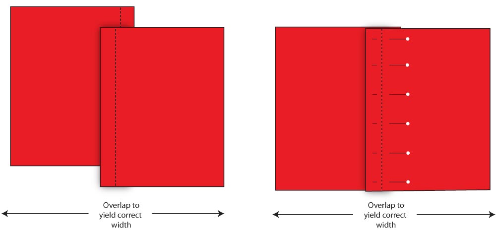- Take both pieces and overlap the hems to yield the correct finished width (18″ in our sample)