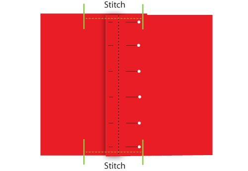 - Following the instructions in your machine’s manual, make one buttonhole at each of the three marks. The buttonholes should be vertical within the hemmed edge – in other words parallel to the hemmed edge.