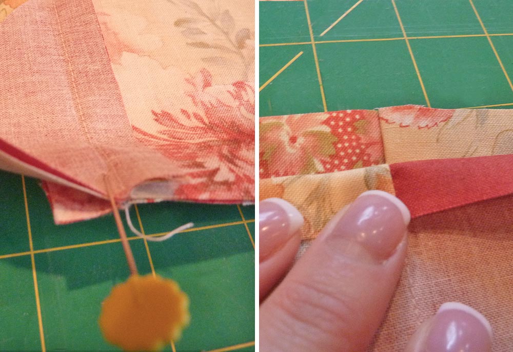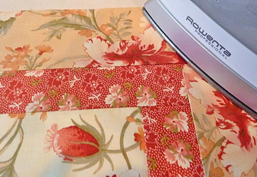 - In addition to pressing towards the darker color, for all the above seaming it is important to alternate the direction of the seams you will be matching up. In other words, if you press the seam of one piece to the right, the seam it matches up with should be pressed to the left. This will allow the seams to nest together, the seam lines to match perfectly, and the patchwork to lay nice and flat.
