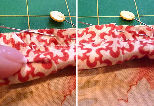 - Wrap the fabric around the cord. Pin close to the cording to hold it in place.