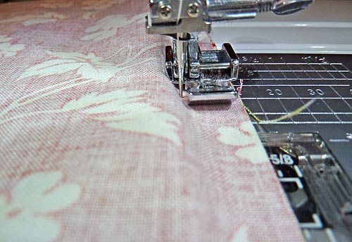 - Using a ½” seam allowance and your zipper foot, sew around all four sides of the pillow.