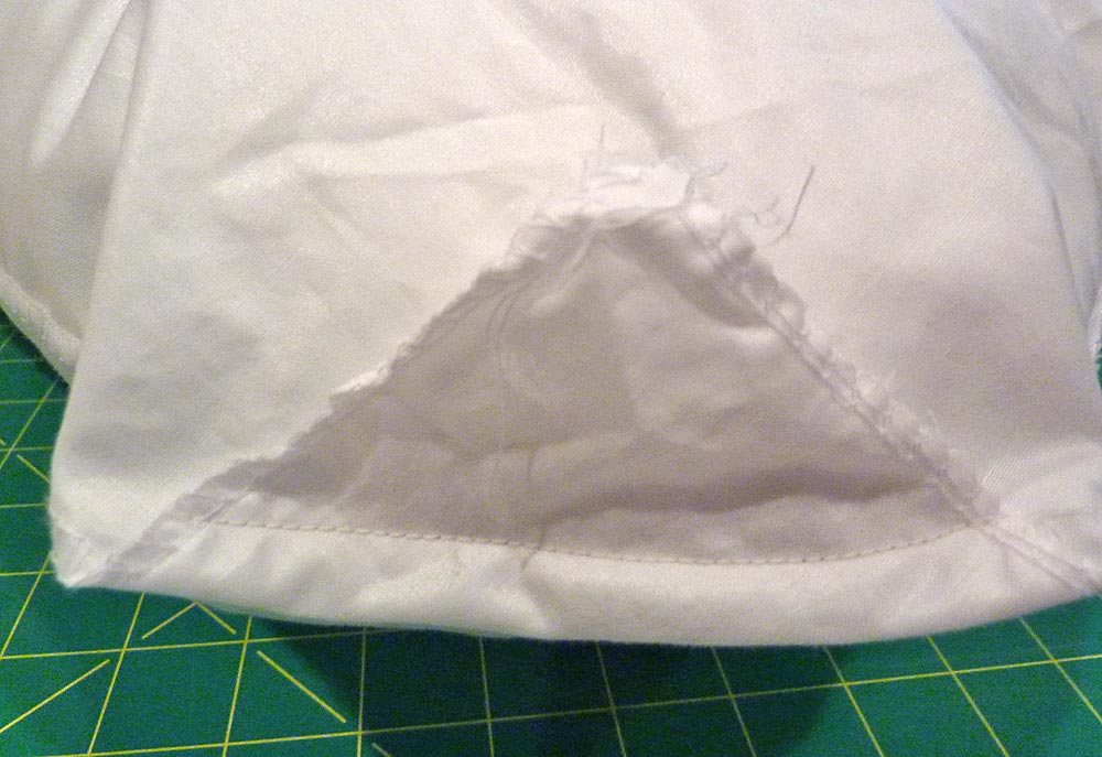 - So, we stitched and cut off the corners of our pillow form to match the pillow cover.
