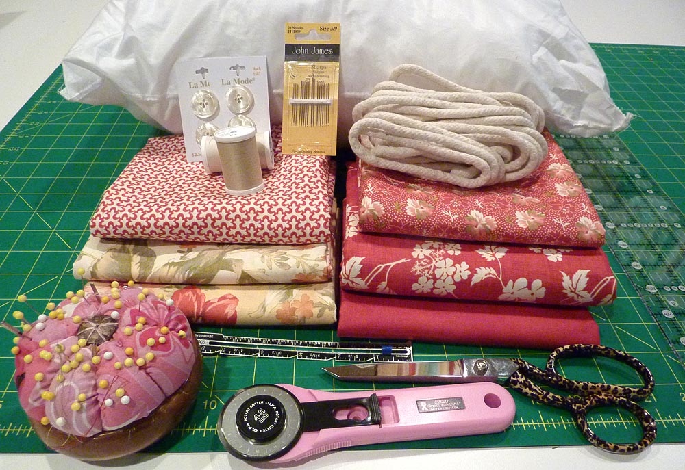 - ½ yard of ONE additional coordinating fabric for the piping; we used Joanna Figueroa’s Butterscotch & Rose by Fig Tree Quilts for Moda Fabrics in Ruby Acorn Mosaic