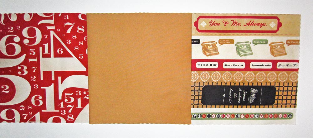 - Sew this vertical accent strip to the large solid back panel (the 38½” x 57½” piece). To do this, place the two pieces right sides together along one 57½” side. Looking down at the back panel, it should be the left side of the accent strip and the right side of the solid piece that are being sewn together. Pin in place.