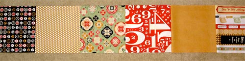 - Stitch together with a ¼” seam allowance. Press all of these seams open. You now have one vertical strip of six patterned squares.