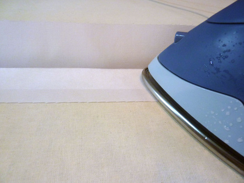 - Repeat to fuse and press the remaining strip. You’ve created two border binding/tie strips.