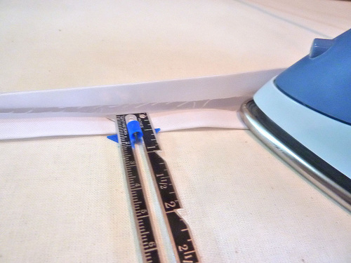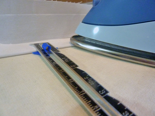 - Along the side with interfacing, also press in the long raw edge ½”, which means it will fold right along the edge of the interfacing.