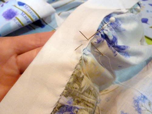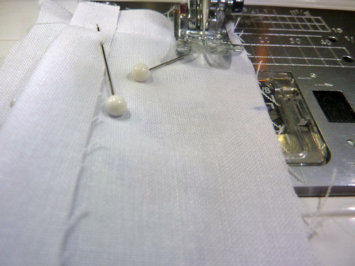 - Pin the panels together along the bottom edge only.