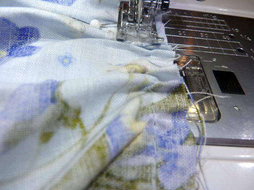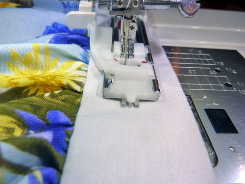 - If necessary, re-thread your machine with thread to best match the skirt fabric in both the top and the bobbin. Re-set the stitch to normal.