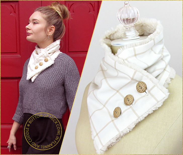 We went with a lovely neutral color combination that will work well through winter and even into the first cool days of spring. Of course, the choices in both Cuddle and Flannel are almost endless, so you can put together all kinds of options. And since you just need a little bit of both fabrics, you could make several for yourself, family, and friends, customizing each to match the wearer’s favorite colors.