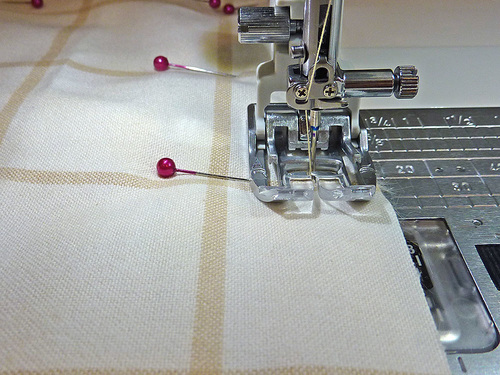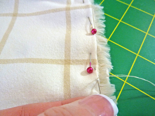 - If you followed our ‘tuck and pin’ suggestion above, you should have a clean seam. However, working from the right side, you can also use a straight pin to pull the nap from the seam where needed.