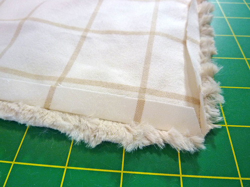 - Place the flannel and luxury fleece panels right sides together, aligning all four sides.