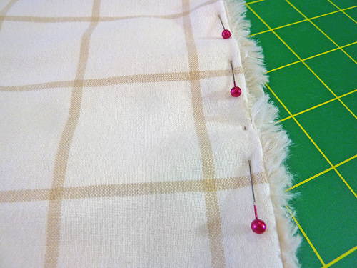 - Fold in the edges of the opening so they are flush with the sewn seam. Brush the nap out of the way and pin closed.
