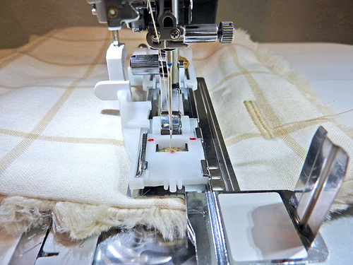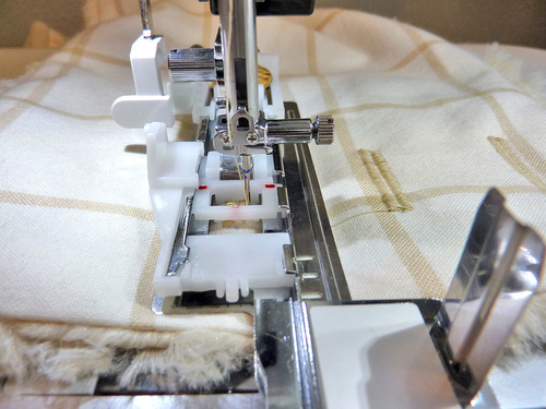 - If possible, attach a Walking or Even Feed foot; we used the built-in AcuFeed™ Flex fabric feeding system.