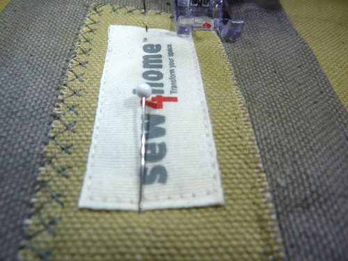 4. If you’d like to add your own label to your bag, find the 3″ x 1¼” backing rectangle, center your label on the right side and stitch in place. This backing rectangle is designed to have raw edges.
