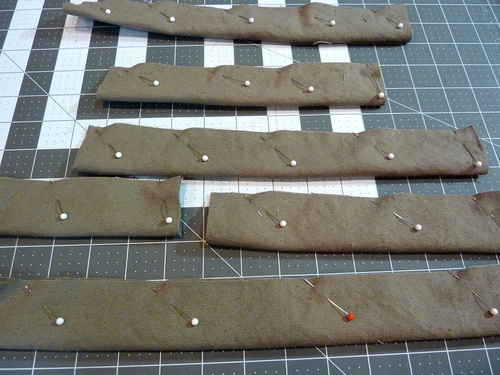 4. Turn all six straps right side out. Press flat with the seam running along the side edge.