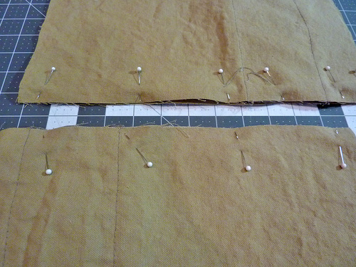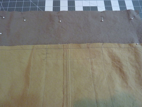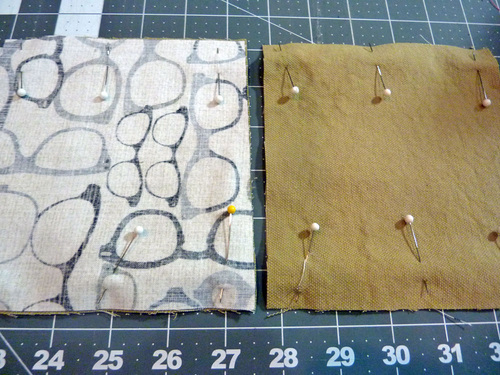 5. Pin each pair of panels together along the center 13½” edges, being very careful to line up the horizontal panels.